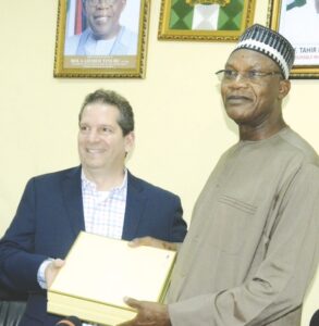 • Minister of Education, Prof. Tahir Mamman (SAN) with The President & Chairman of Anthology who visited the minister with TETFund team in Abuja